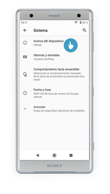 1. Abra Ajustes > Sistema y seleccione Acerca del teléfono
